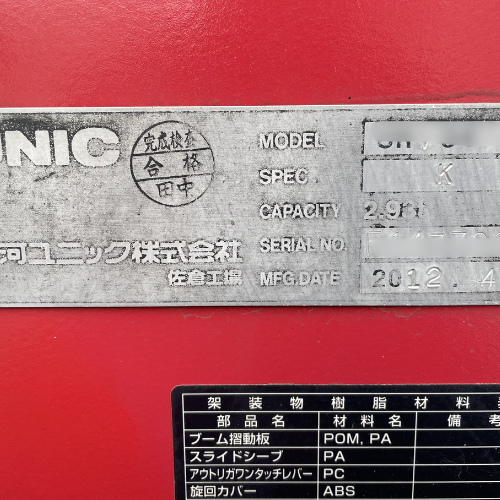 型式や製造番号が記載されているプレート